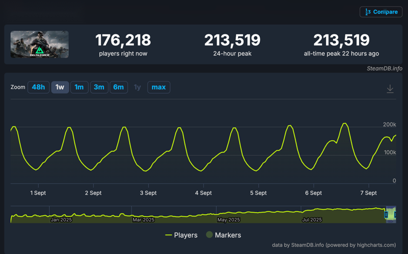 Recent reports from Insider Gaming reveal that Delta Force has achieved a new peak in player engagement, with over 213,500 players concurrently online on Steam. This marks a notable milestone, surpassing its previous record of approximately 210,400 players set in mid-August. Although the increase isn't drastic, it highlights the game’s enduring popularity and steady growth.
