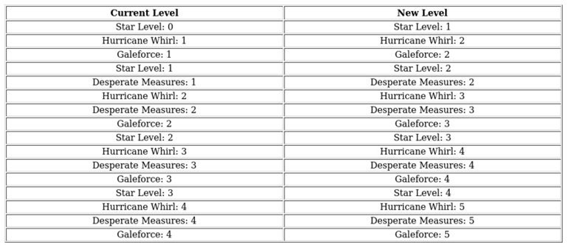 The initial column indicates your hero's current skill and star level, while the adjacent column displays the recommended upgrade target.