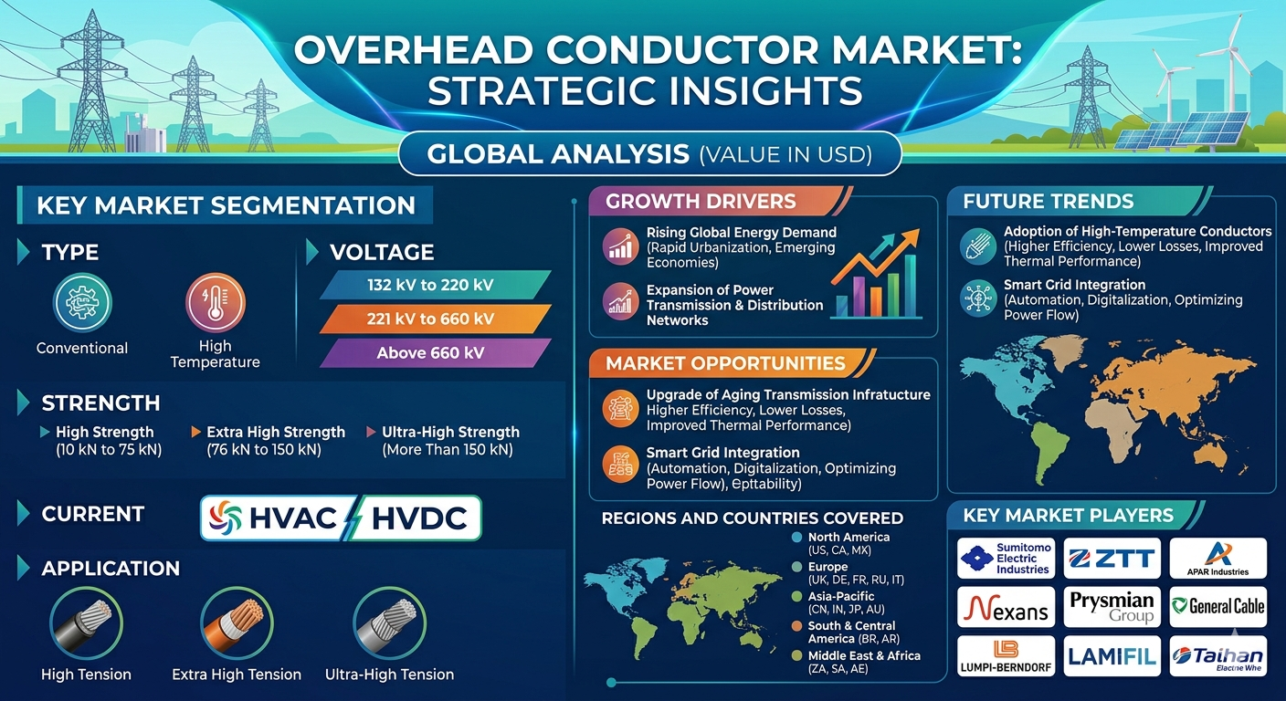Future opportunities will emerge from smart grid development, cross-border interconnections, and distributed energy resource integration. The increasing focus on sustainability, energy efficiency, and infrastructure resilience will continue to drive global demand for advanced overhead conductor solutions.